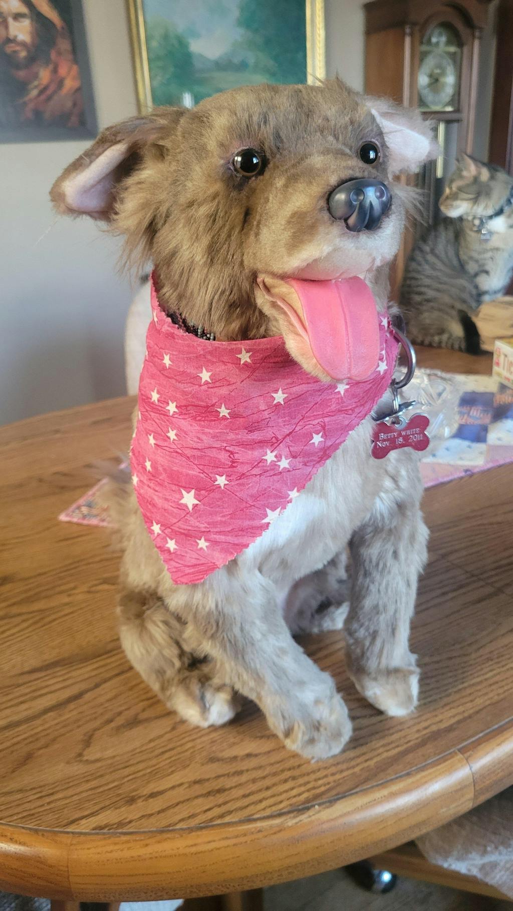 Thank you so much for the attention to detail in giving me a little replica of my fur baby in heaven. It puts a smile on my face every single day when I wake up and see her there with her ears perked and her tail wagging. Means the world to me!