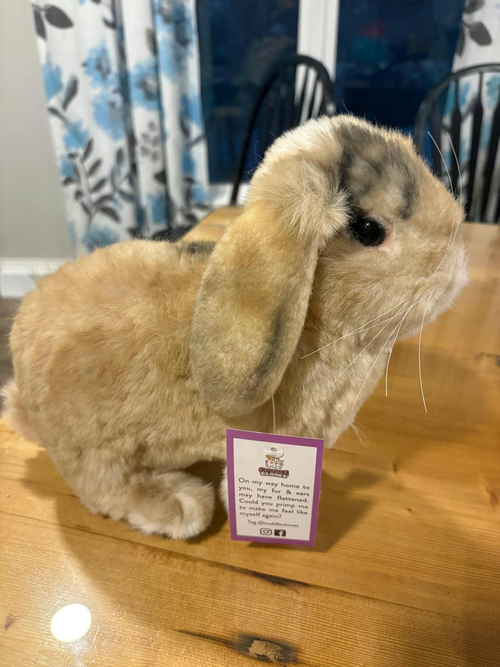 I bought this for my granddaughter who tragically lost her bunny unexpectedly. Her reaction to how much Theo's clone looked like him was amazing. He was very realistic looking and the kind words on his tags were thoughtful.