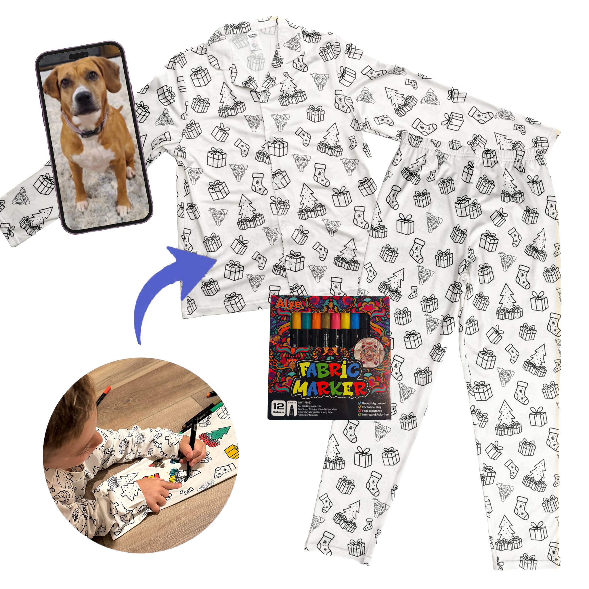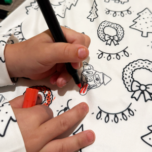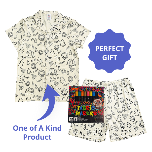 Unleash your child's creativity with our one-of-a-kind Colorable Pet Pajamas! They arrive as a blank canvas with their pet's face outlined, ready to be brought to life with fabric markers. It’s an interactive experience that transforms cozy loungewear into a personalized art project. After the coloring fun, they get to wear their masterpiece, snuggled up in the warmth of their favorite furry friend. The ultimate gift of comfort, creativity, and connection.