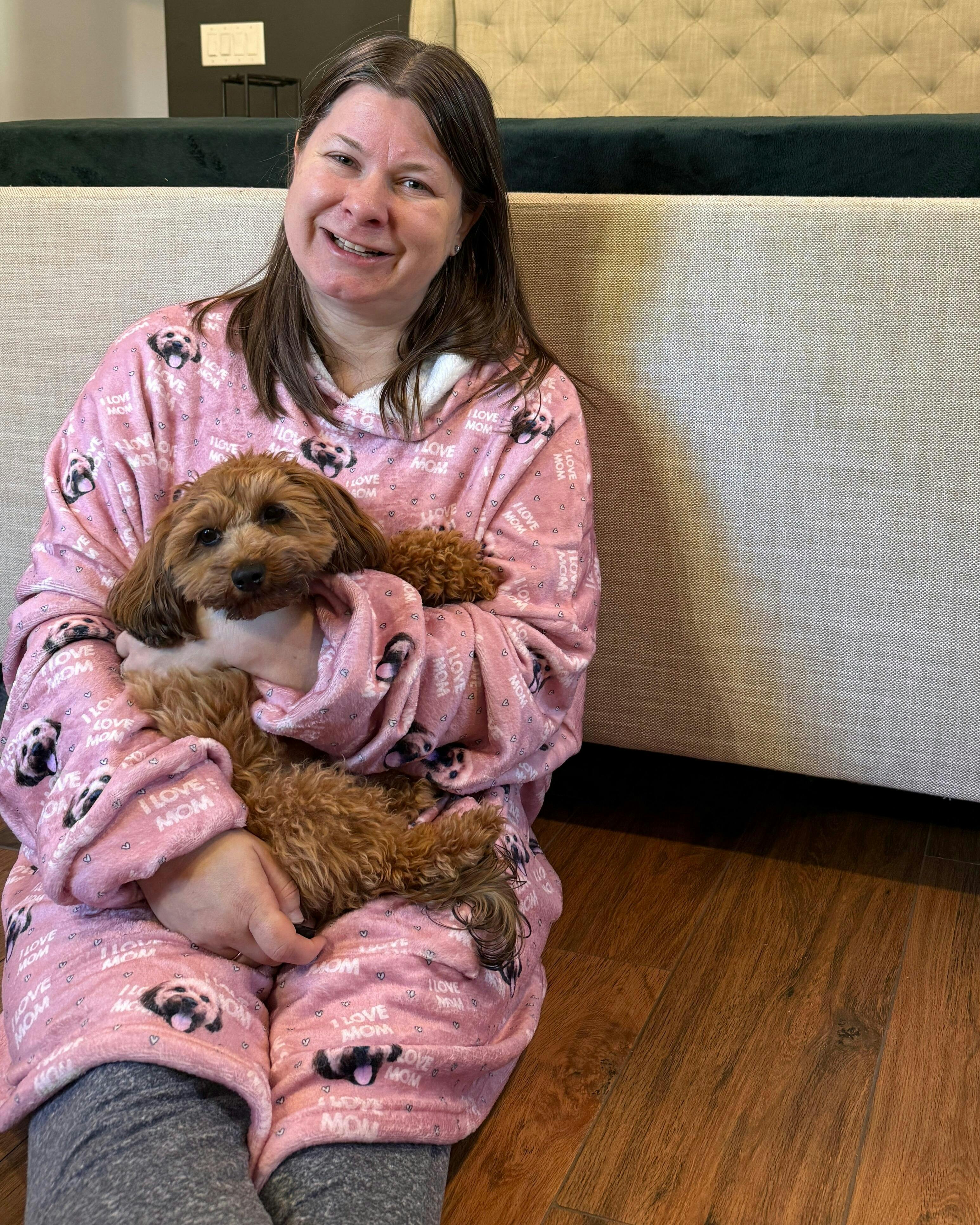 I’m absolutely in love with this blanket hoodie featuring my dog’s face! It’s the cutest thing ever; especially with the “I Love Mom” and his little smiling face. The fleece is incredibly soft and cozy, and the oversized fit gives it that perfect blanket feel. I know it will be my new favorite thing to wear during this holiday season. This would make the perfect gift for any animal lover.