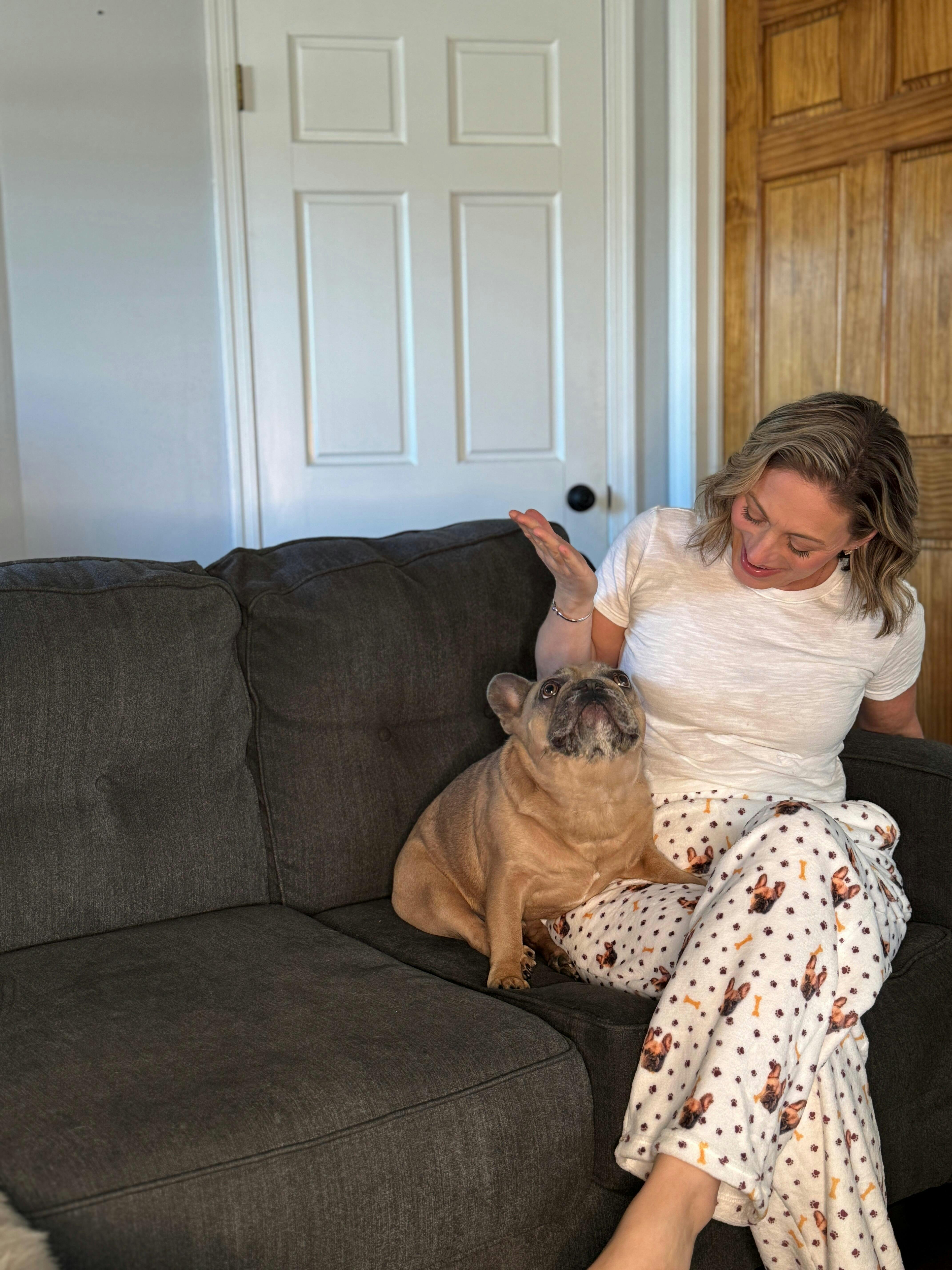 I absolutely love how my fleece pants turned out with my Frenchie on them! They are adorable and super cozy and soft! Thank you so much for creating my perfect cozy comfy pants! -Lisa