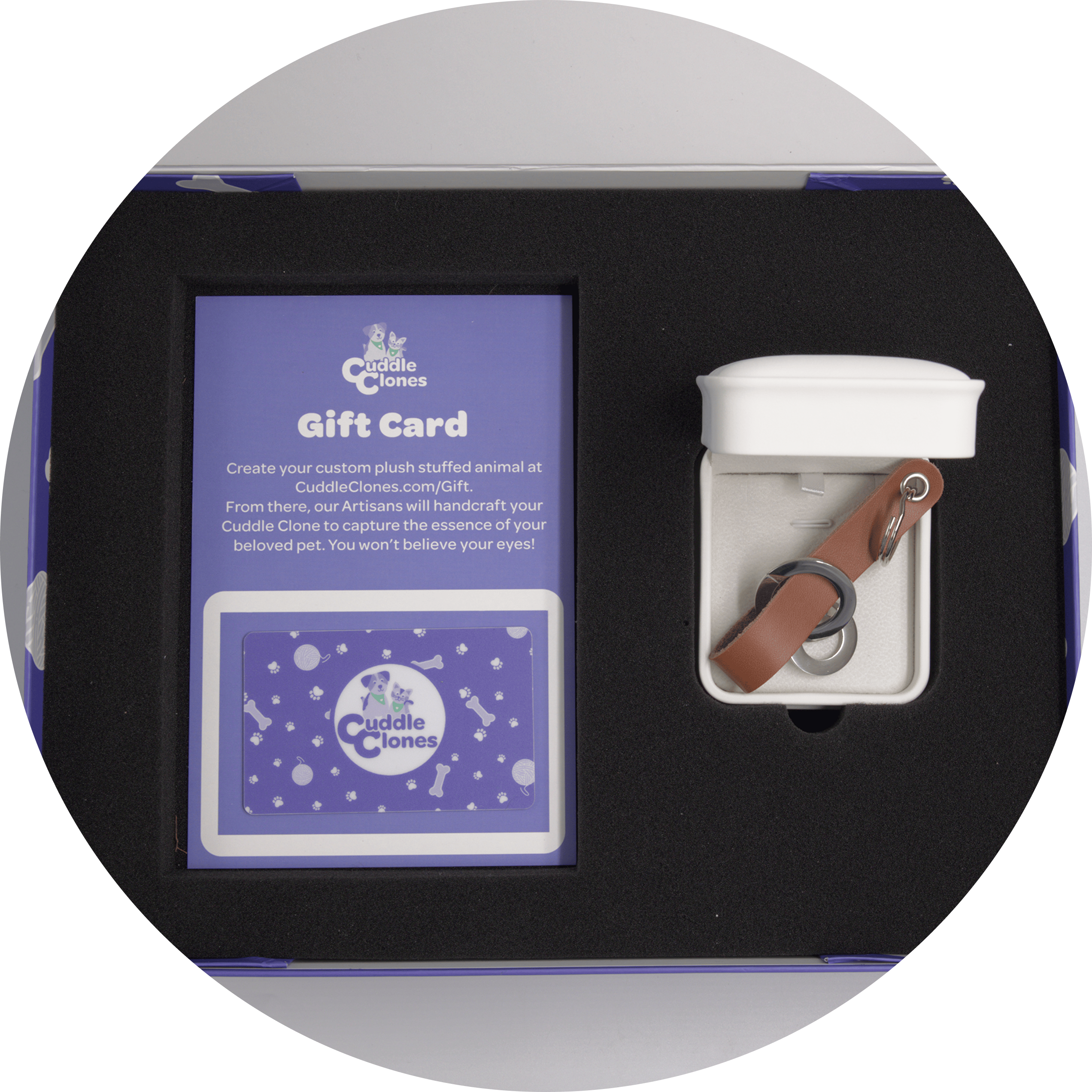 Inside the Memorial Gift Box, you’ll find a full-value gift card for a Custom Cuddle Clone, giving your loved one the opportunity to create a lifelike plush replica of their cherished pet whenever they’re ready.