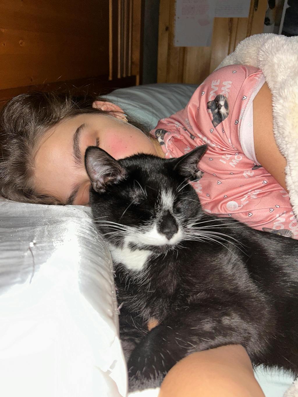 The material is so soft/silky and stretchy and it has my little cats face on it. I wear it to bed every night, I love it so much :))