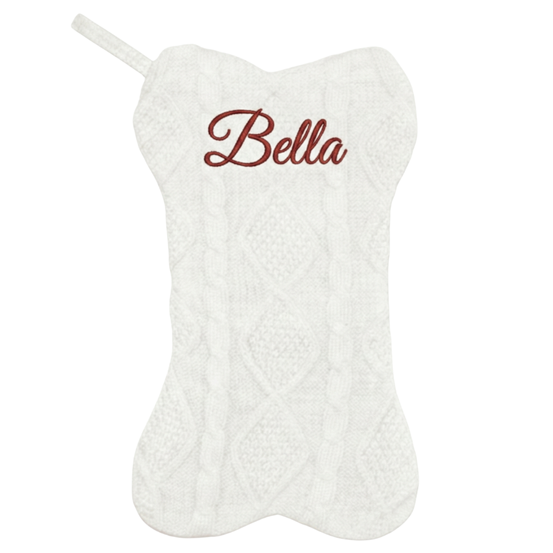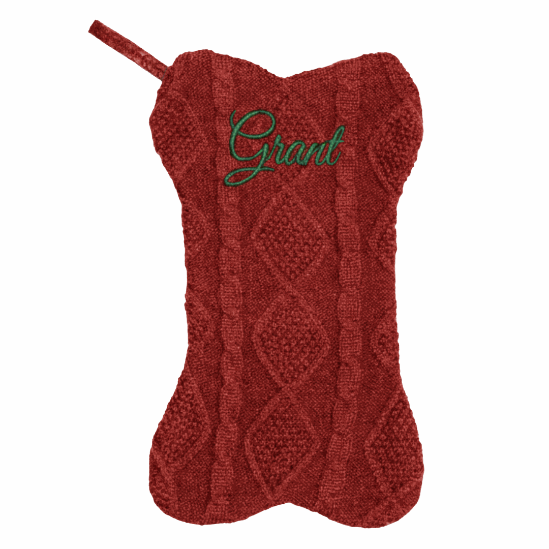 Our dog-bone stockings are crafted from soft, cozy knit material that looks and feels ultra-festive on your mantle. Each pet’s name is stitched with precision embroidery—no peeling vinyl—so the lettering stays crisp, clean, and readable year after year. Built to last through countless Christmas mornings, this is a keepsake you’ll reach for every holiday season.