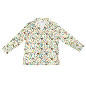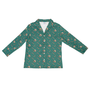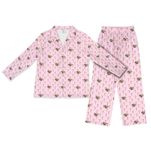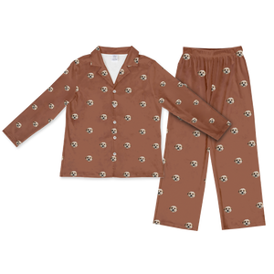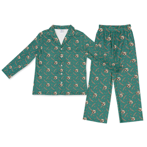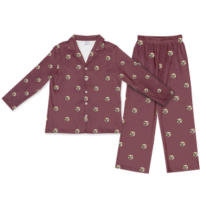To ensure the longevity of the print and the fabric, it's recommended to wash the pajamas in cold water, inside out, and tumble dry on low heat. Avoid ironing directly on the printed area.