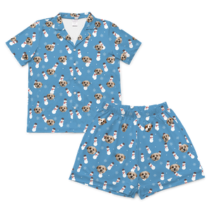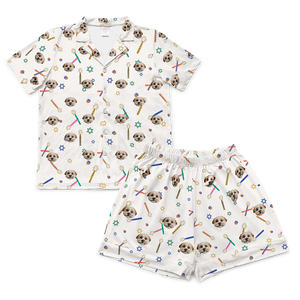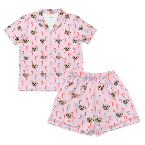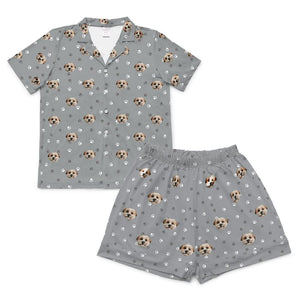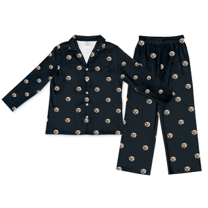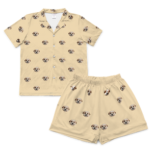 Réveillez-vous avec style avec notre pyjama personnalisé à imprimé animal de compagnie ! Nos pyjamas sont faits d'un mélange de tissus soyeux (96 % polyester/4 % élasthanne) et sont disponibles dans différents styles : manches courtes et short, manches longues et pantalon, ou toute combinaison des deux !